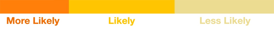 This degree of match is also visually represented with a color bar, the "Likelihood Indicator," on the right-hand side. The darker the shade, the more likely the diagnosis is the correct one, with dark orange being used to highlight the more likely diagnoses, yellow for likely and beige for less likely. This match is the degree of relevance calculated by Isabel’s software adjusted by age, gender, pregnancy and geographical prevalence scores. This score is based purely on the criteria entered and is not the same as clinical probability of a specific diagnosis for a specific patient. You as the clinician will decide what is relevant or needs further examination for your patient.